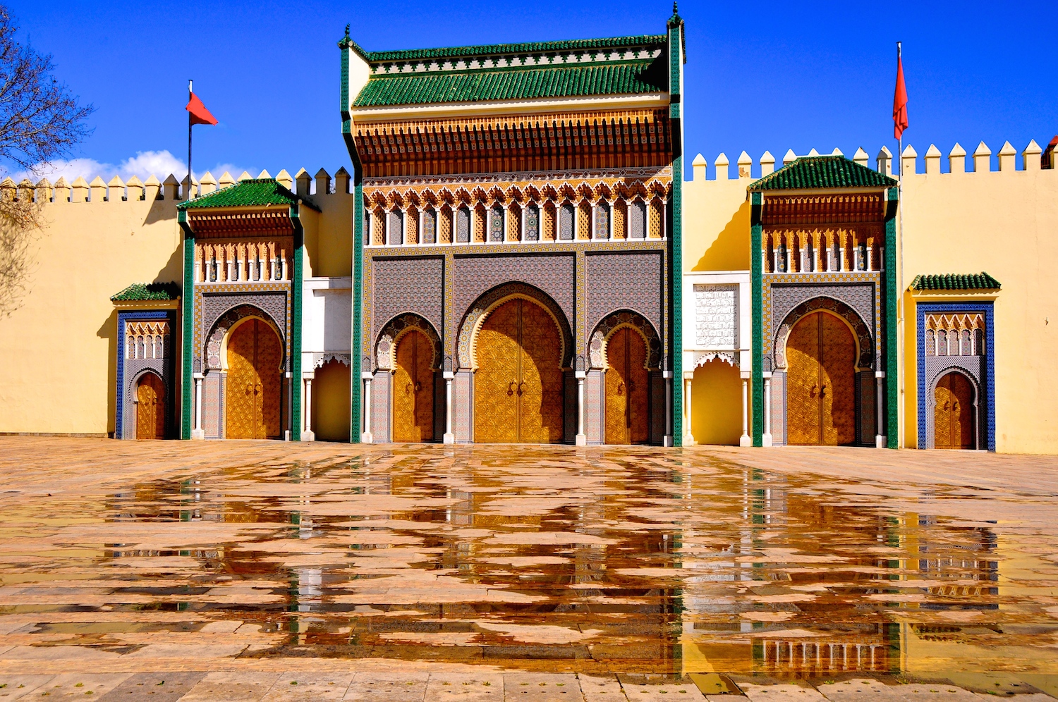 Explore Fez, la ciudad imperial más antigua de Marruecos, famosa por su historia y arquitectura medieval. Descubra la puerta del Palacio Real, el barrio judío (Mellah), la Universidad de Al Quaraouine, considerada la más antigua del mundo, las tradicionales tenerías de cuero y el mausoleo de Mulay Idriss. Pase la tarde recorriendo la medina de Fez, Patrimonio de la Humanidad, y disfrute de una cena en un restaurante local para degustar la auténtica cocina marroquí.